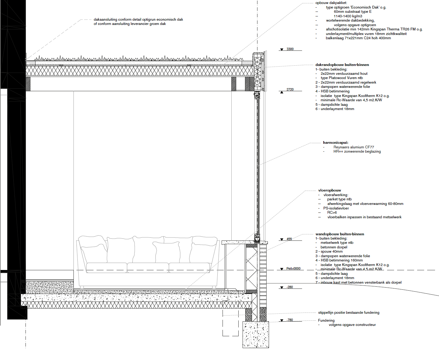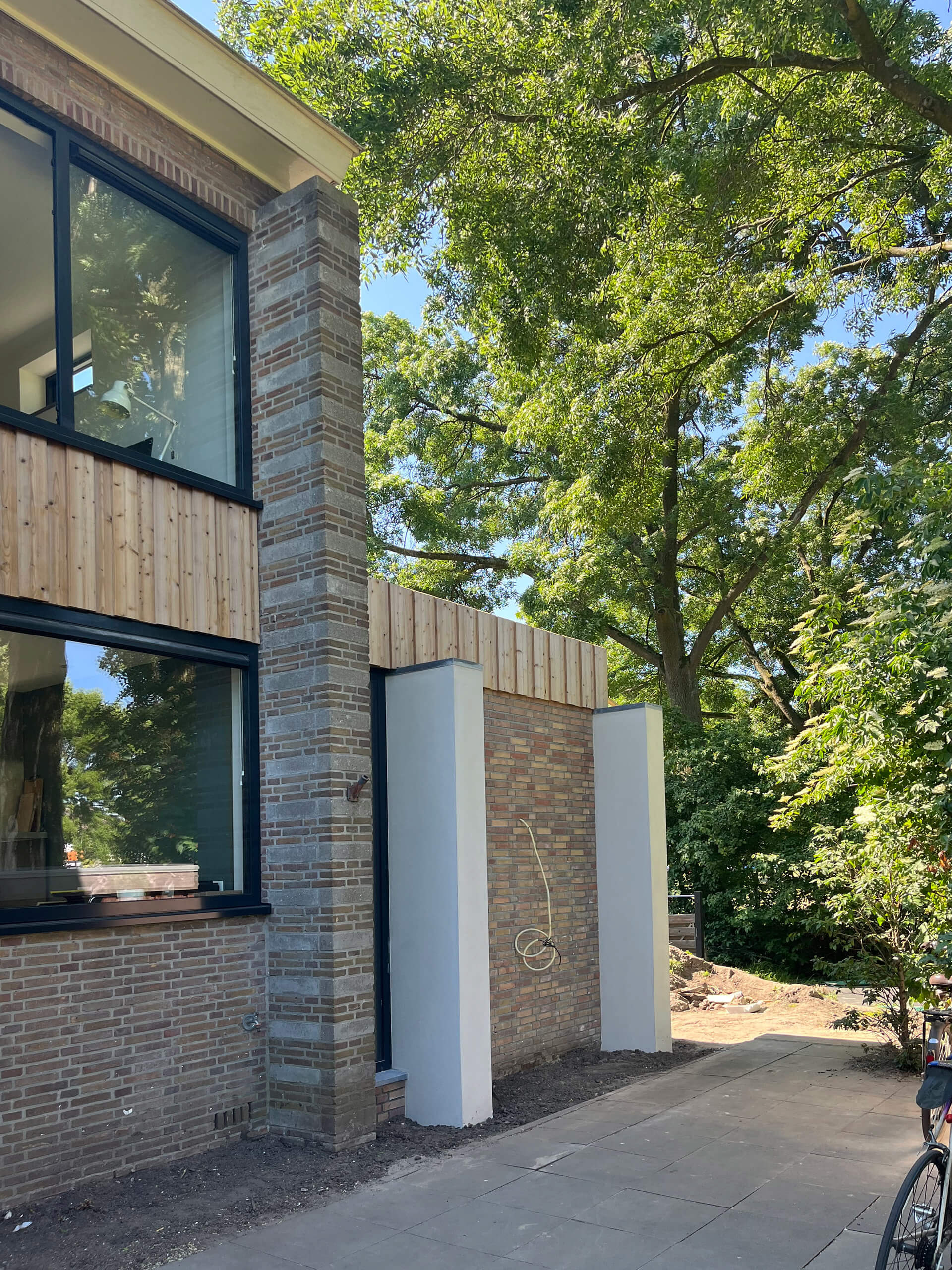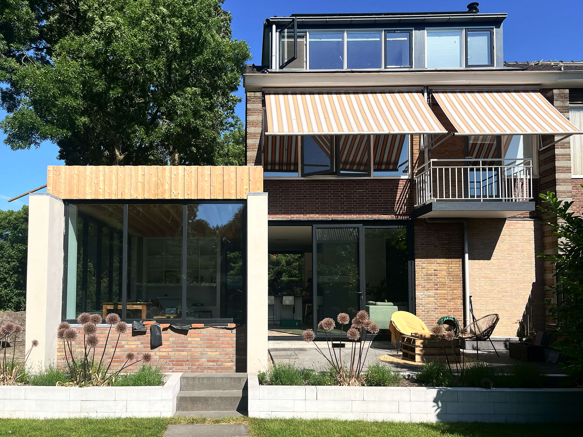 Het ontwerp maakt het verschil tussen oud en nieuw bewust zichtbaar en tegelijkertijd wordt de ontwerp taal gebruikt om de nieuwe uitbreiding vorm te geven. Het bestaande metselwerk van de woning blijft intact en vormt een robuuste achtergrond voor de nieuwe toevoeging. Daartegenover staat een lichte en precieze architectuur van hout, glas en slanke kozijnen. Door dit contrast blijft de geschiedenis van het huis leesbaar, terwijl het geheel toch als één samenhangende woning wordt ervaren.