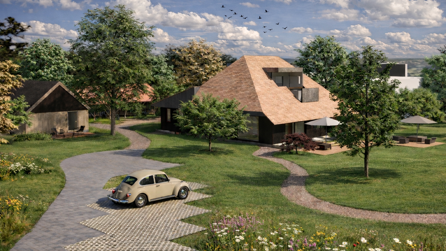 Vijf biobased woningen rond een gedeeld erf